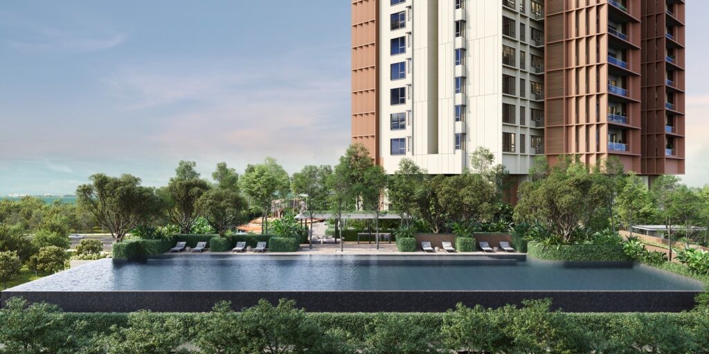 The development boasts a range of amenities designed to enhance residents’ lifestyles. These include landscaped pools, lounges, and BBQ spaces to foster social interaction. Dedicated areas for children, such as playgrounds and a wading pool, cater to families, while pet-friendly spaces accommodate furry companions.