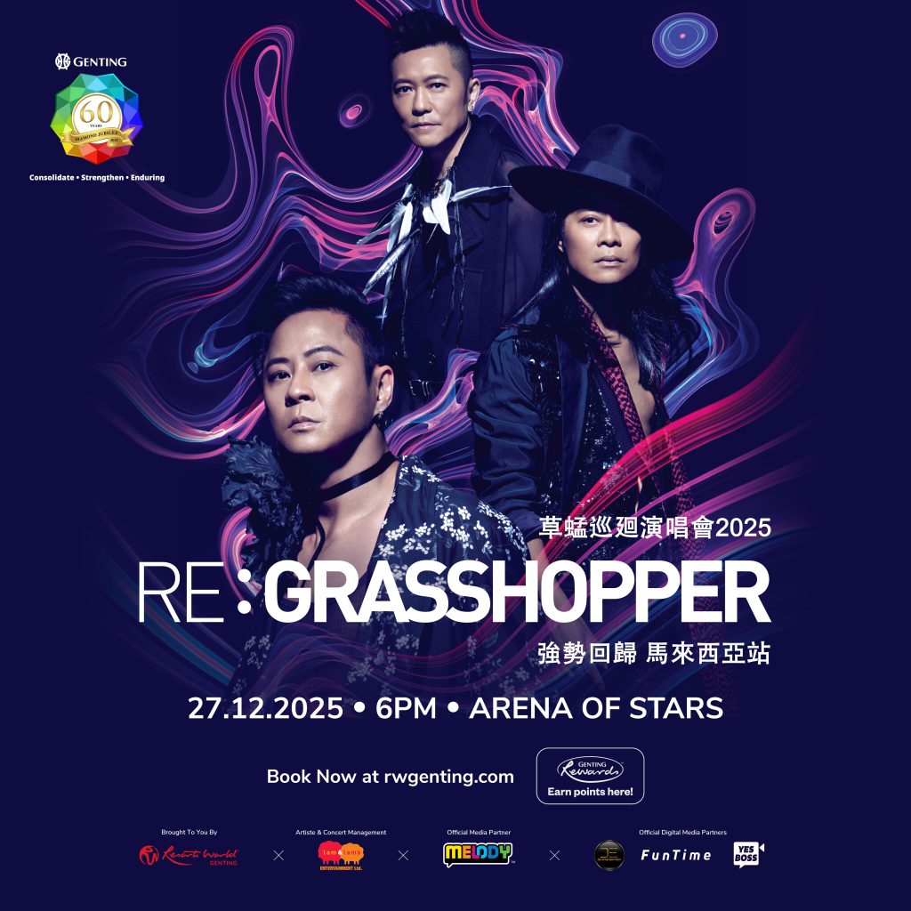 Legendary Hong Kong pop group Grasshopper is poised to make a powerful comeback in Malaysia with their highly anticipated “Re: GRASSHOPPER Concert Tour 2025.” The concert is scheduled for 27 December 2025 at 6 PM at the Arena of Stars, Resorts World Genting, promising to be a spectacular finale to the year.