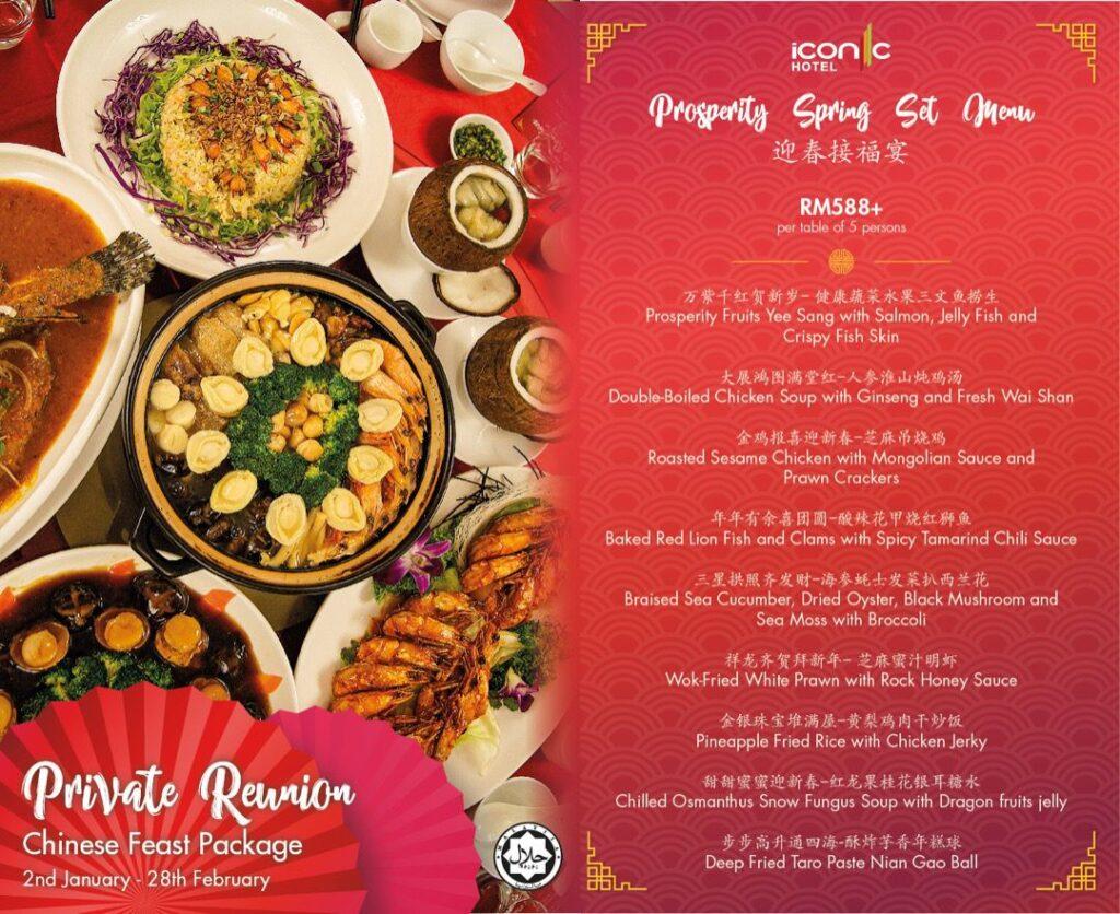 If you are too lazy to cook at home for your reunion dinner, you can have it at Iconic Hotel. There will be live music performances and lucky draws to usher the festivities.