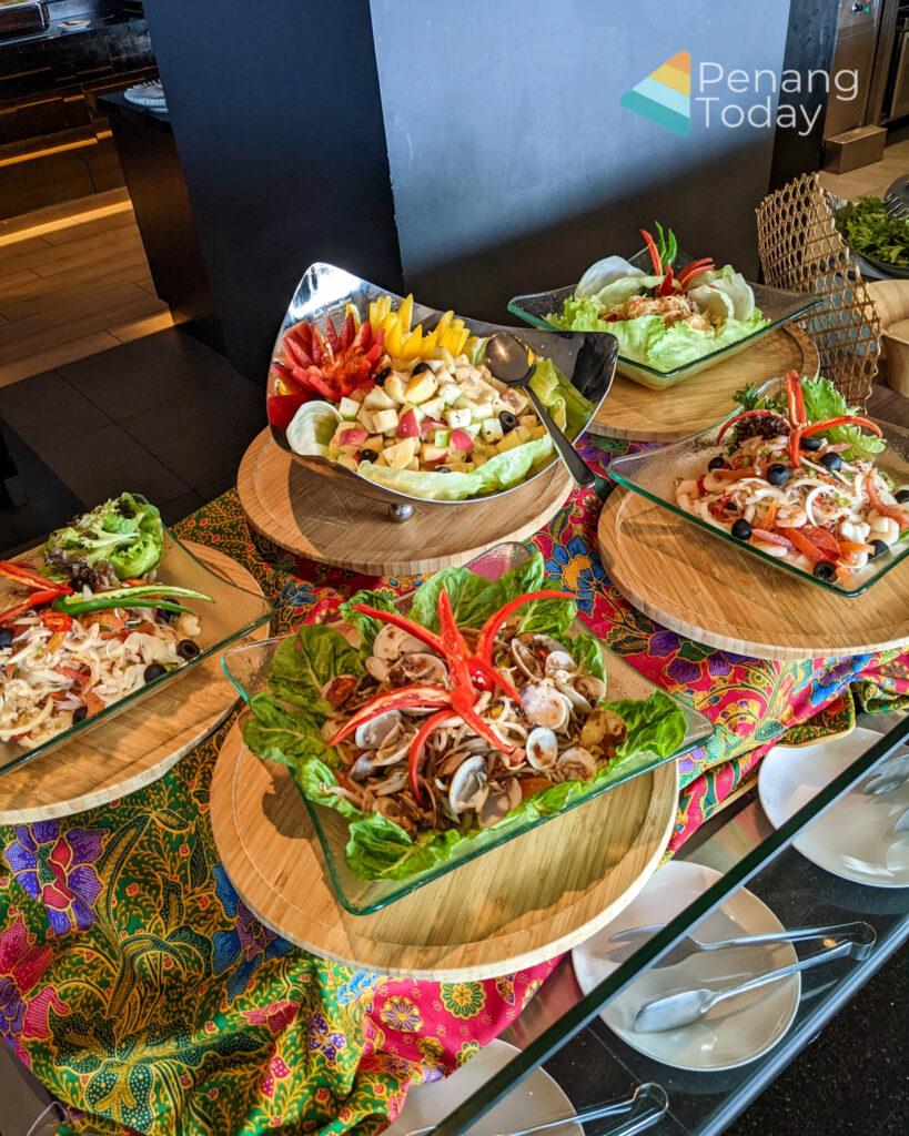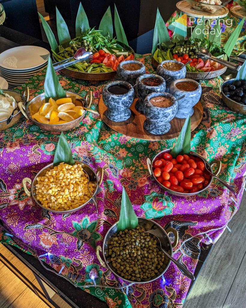 The buffet spread features Malay kampung delights like raw green ulam, ulam raja, ulam pegaga, daun selom, jantung pisang with a medley of sambals including sambal belacan, sambal tempoyak, sambal mangga, sambal kelapa, sambal kicap pedas, petis udang and cincalok.
