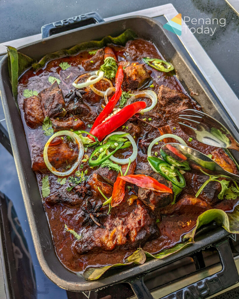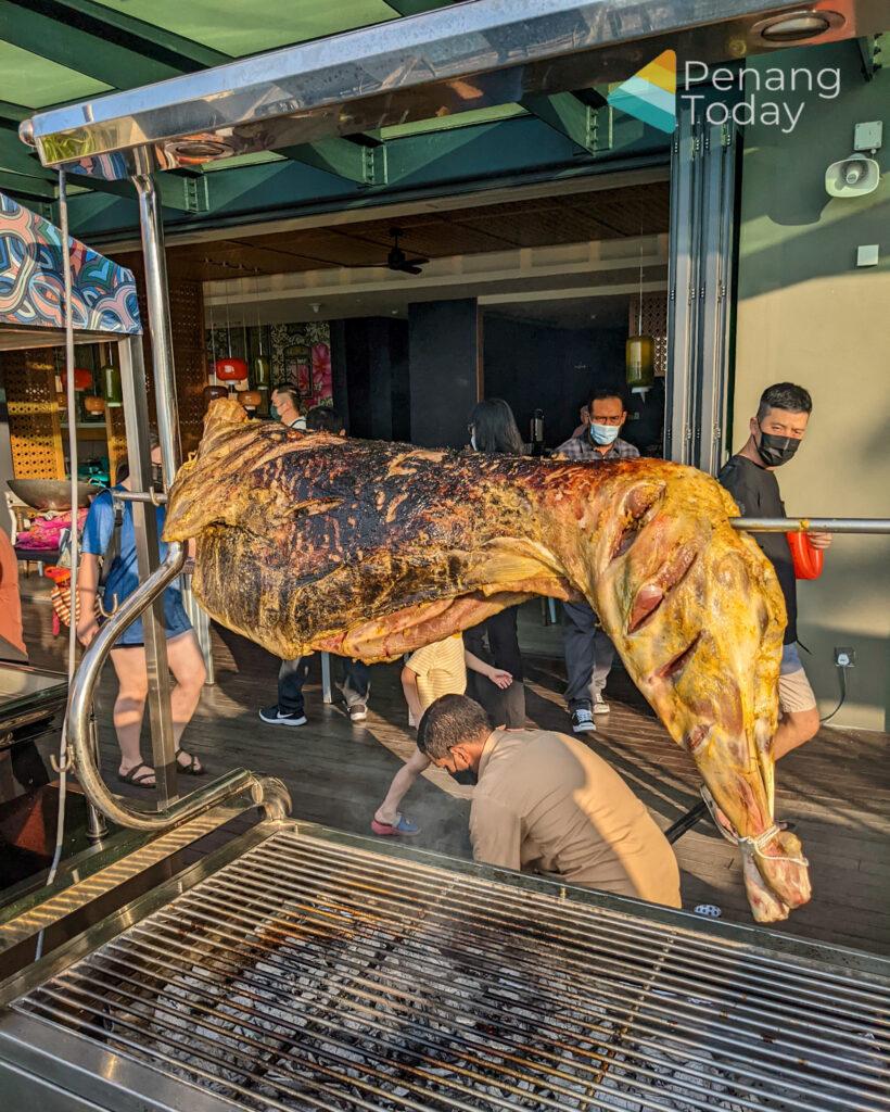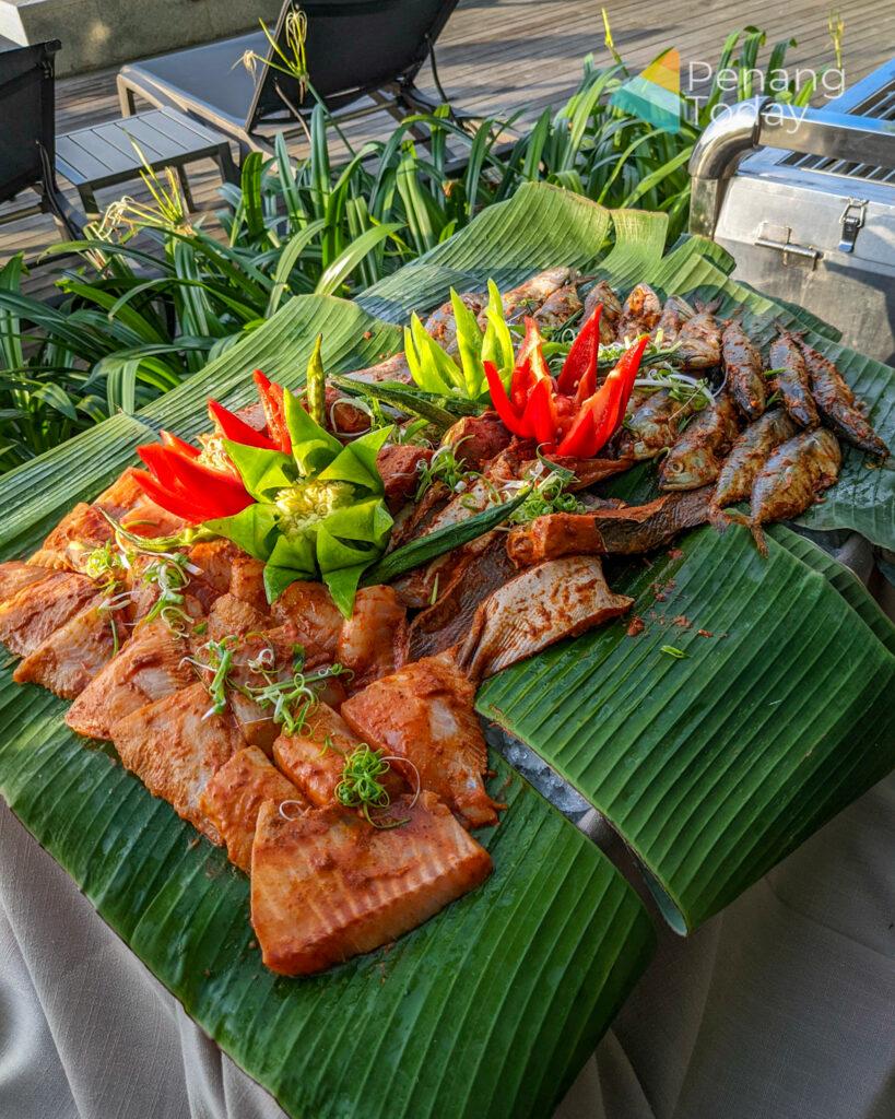 Indonesian dishes include gulai daging masak hitam, gulai lemak nangka, gulai kambing and gulai patin tempoyak. There will be whole roasted lamb marinated with lemongrass, turmeric and galangal, grilled seafood wrapped in banana leaves and spicy sambal, chicken and beef satay, chicken and beef Ramli burger, beef and chicken murtabak served with pickled onions.