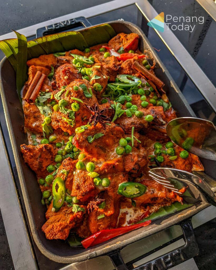 The Malay corner includes beef rendang, udang masak sambal petai, clams in padprik sauce, ribs in asam pedas sauce and spicy fried chicken. The Indian corner has chicken and lamb tandoori, chicken briyani, aloo ghobi, butter chicken masala and Madras lamb curry. There is wasabi marinated fried chicken with sesame sauce and roasted Mediterranean vegetables in the western corner.
