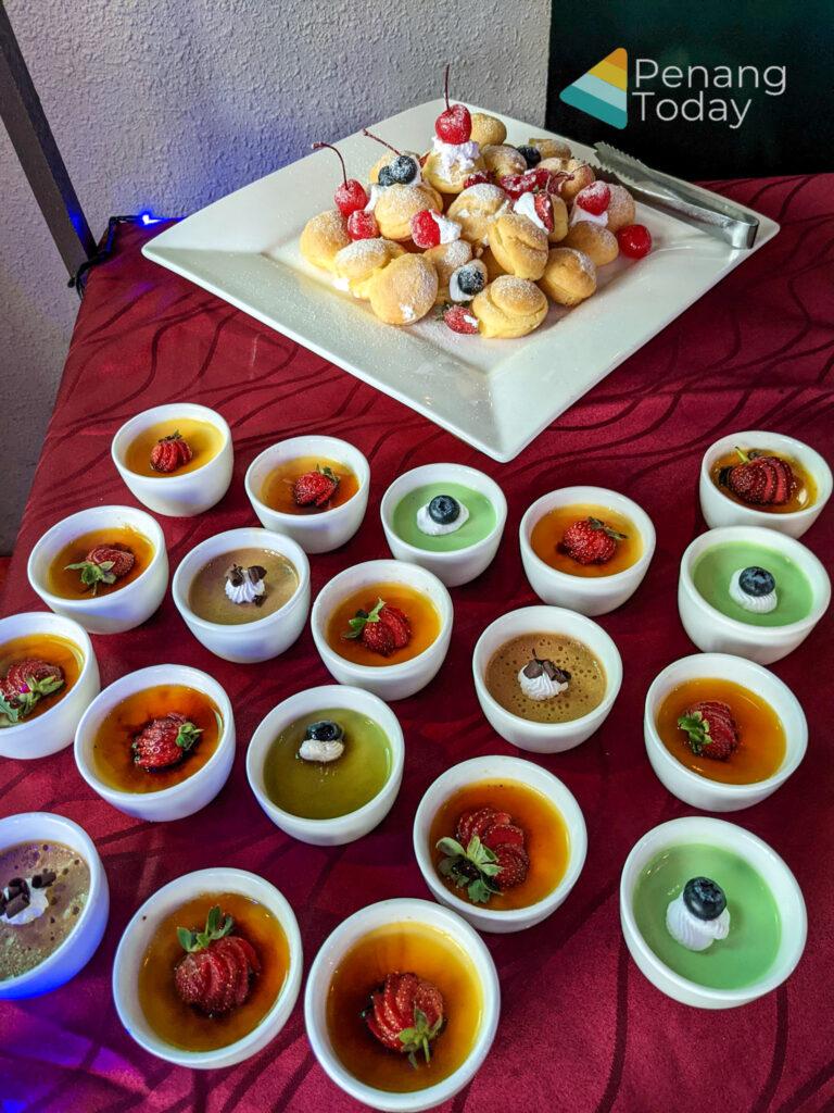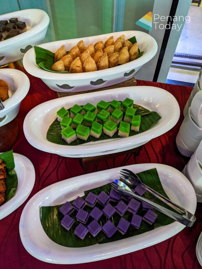 Indulge and sink your teeth into Traditional Malay & Nyonya kuih, ever-popular pengat durian, pengat pisang, ais krim Malaysia, as well as other assorted puddings, cakes, agar-agar and a good selection of refreshing ice cream and 6 types of beverages prepared by Chef Abu Bakar Bin Yusop, Pastry Chef and his pastry team.