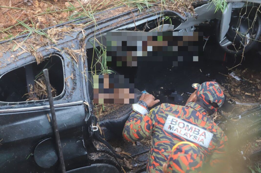 Firemen managed to retrieve the bodies of a man in his 50s and a woman in her 30s from the wreckage. The man was seated in the rear seat, while the woman was found in the front passenger seat. The driver of the vehicle escaped unhurt.