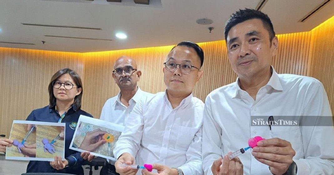Speaking to reporters at his Komtar office, H’ng recounted how parent complaints prompted immediate investigation. “I received complaints from parents regarding the open sales of the toy. My team conducted checks at a night market yesterday and confirmed it was being sold there at RM5 per unit, complete with a syringe. It is also widely available online,” he stated.