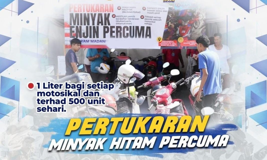 The event offers several freebies for Penangites. Motorcyclists can claim a free one-litre engine oil change, with 500 available each day, totalling 1,500 over the three days. The offer is limited to Malaysian citizens whose MyKad matches the motorcycle owner, for bikes with engines of 250cc and below.