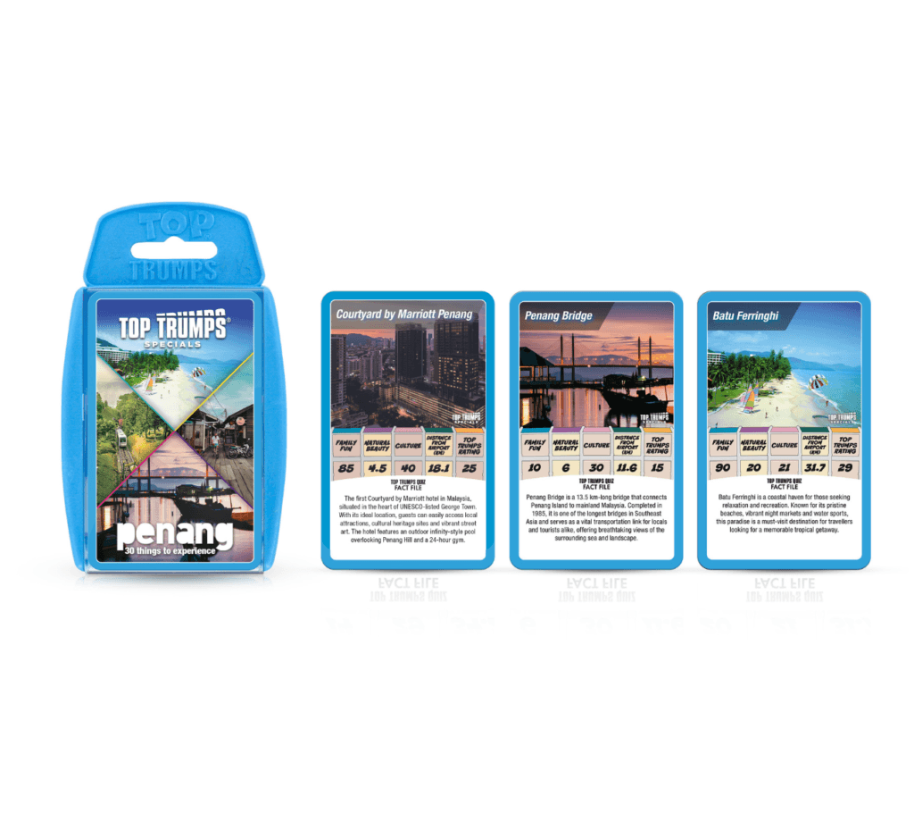 MONOPOLY: Penang Edition and Top Trumps: Penang Edition are available for purchase at select retail outlets across Malaysia, such as BookXcess, Kinokuniya, Twigs, Tsutaya, York House, Hamleys, Toys R Us, Foreva Kids, Design Village Outlet Mall’s Customer Service lounge, Urban Pantry Grocery at Design Village and online (through Shopee – IMAGINEGAMES, and Design Village official website shop). This ensures that locals and visitors can enjoy the game at their leisure.